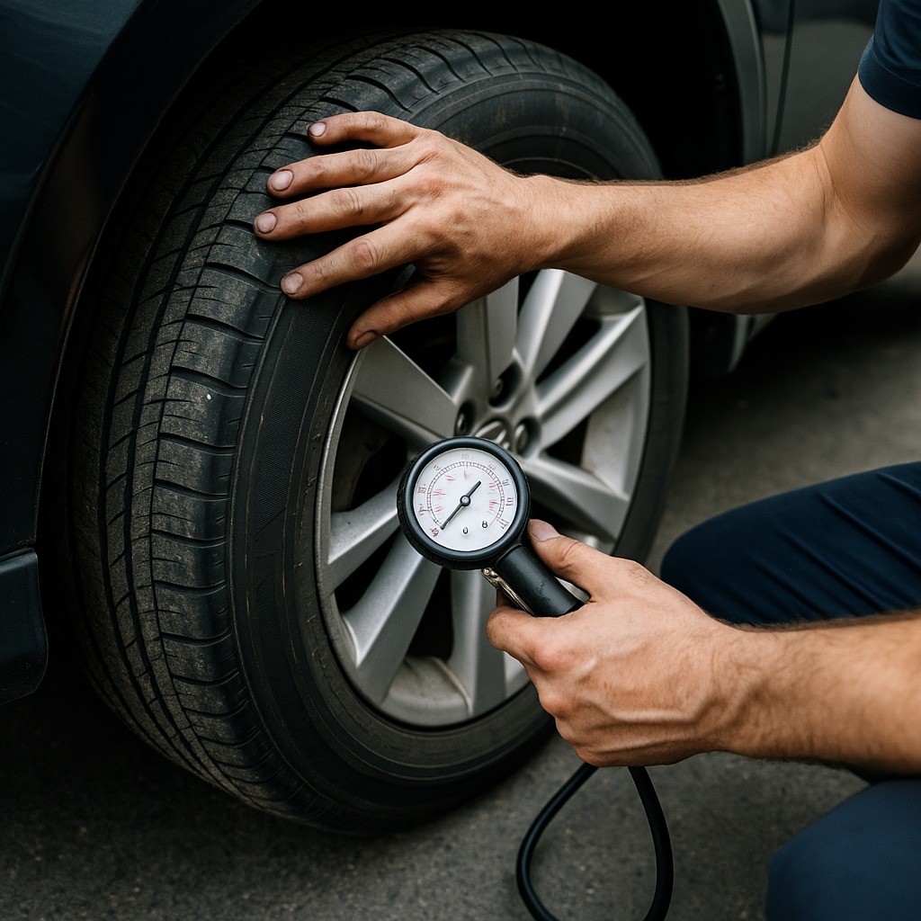 - 공기압 체크: 차량 매뉴얼에 기재된 적정 PSI 수치를 확인하세요. 고속도로 주행 전에는 공기압을 살짝 높이는 것이 좋습니다.