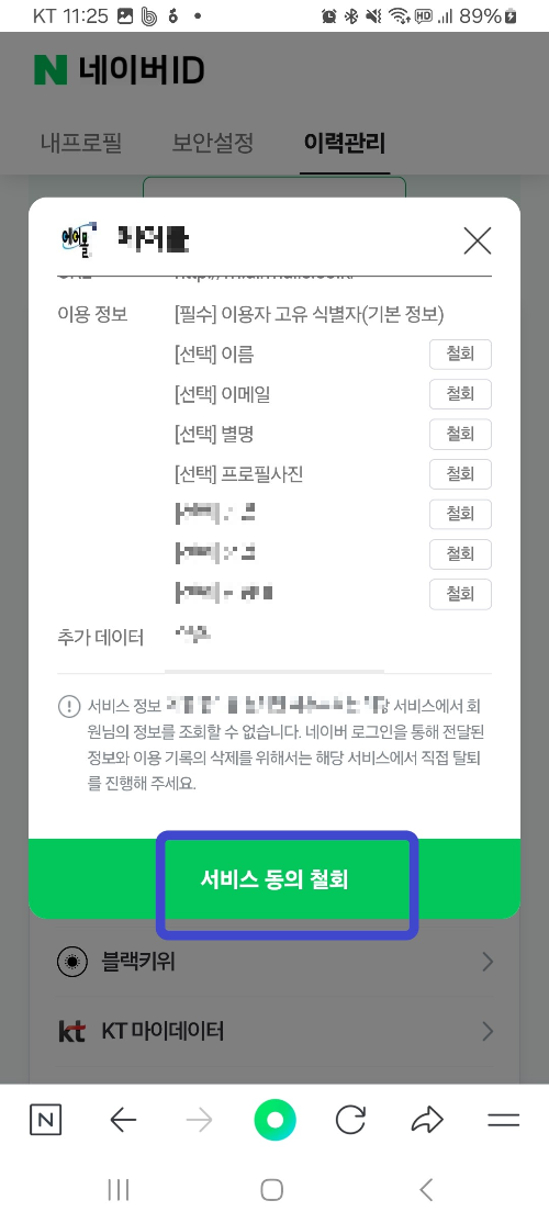 네이버나 카톡으로 간편가입하기를 누르셨다면 누구나 100% 내 정보가 유출된 경우입니다. 네이버나 카톡에서 내 개인 정보가 연동된 사이트를 찾아 더 이상 유출되는 것을 막는 방법을 알려드리겠습니다.